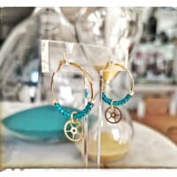 Ces boucles d’oreilles sont réalisées à partir d’un fermoir style dormeuse en plaqué or, les motifs en laiton doré à l’or fin 24K,  et les rouages (véritable). Ils sont garantis sans nickel et plomb.