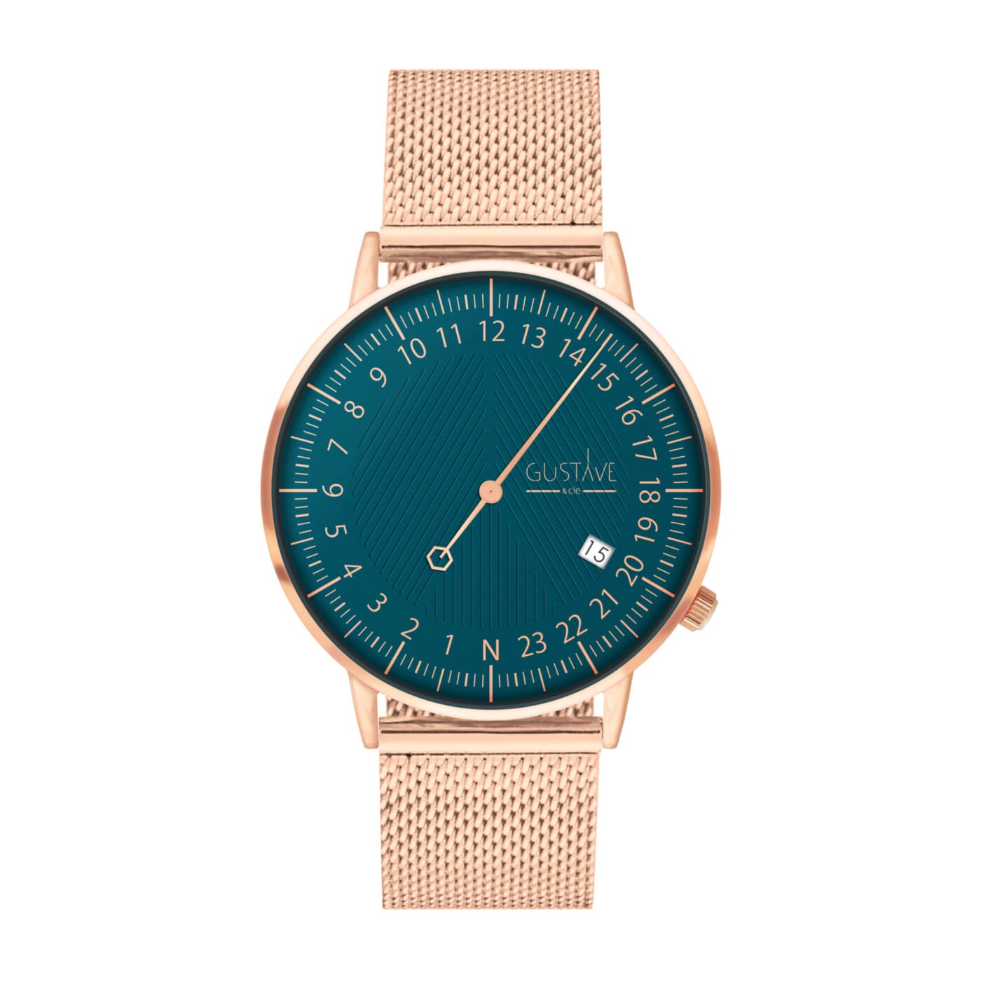 GUSTAVE et cie présente sa collection André en hommage à André Citroën, le premier homme à avoir inscrit son nom sur la tour Eiffel en 1925. Cette montre française bouleverse les codes avec élégance en revisitant le concept de cadran 24 heures utilisé par les militaires et les astronautes.