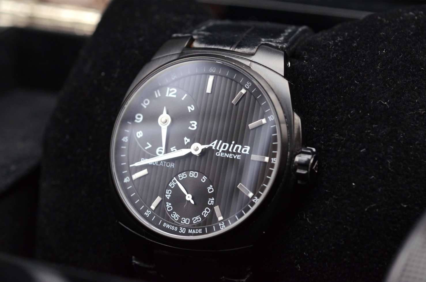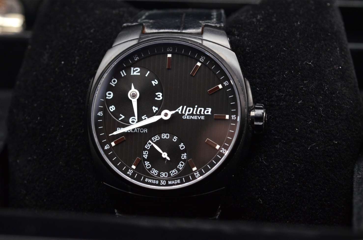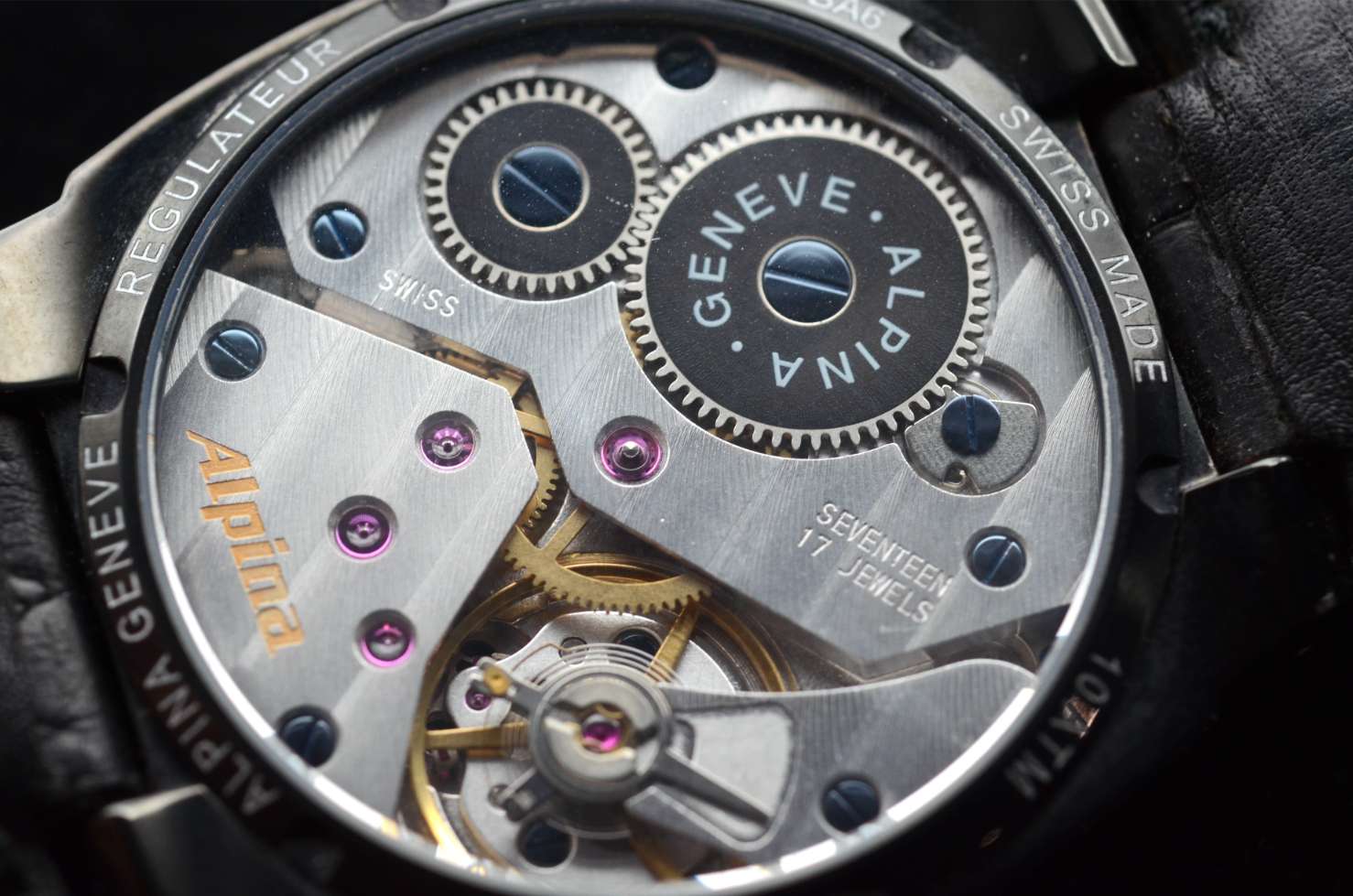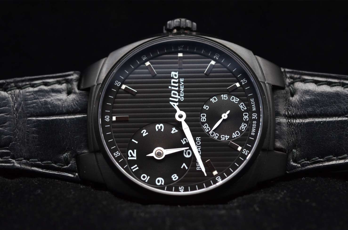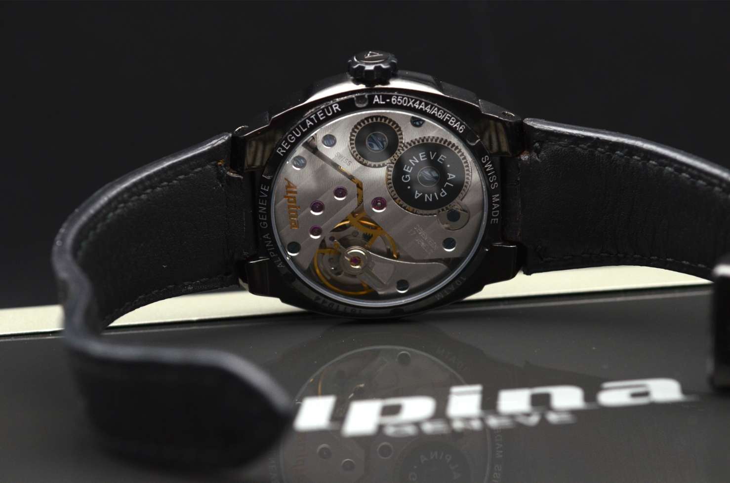 L’Alpina Avalanche Régulator se distingue par son cadran régulateur, configuration horlogère historique qui place la précision au centre de l’attention. Les minutes sont affichées sur une grande aiguille centrale, tandis que les heures et secondes occupent des sous-compteurs distincts, apportant une esthétique technique et un équilibre visuel unique.