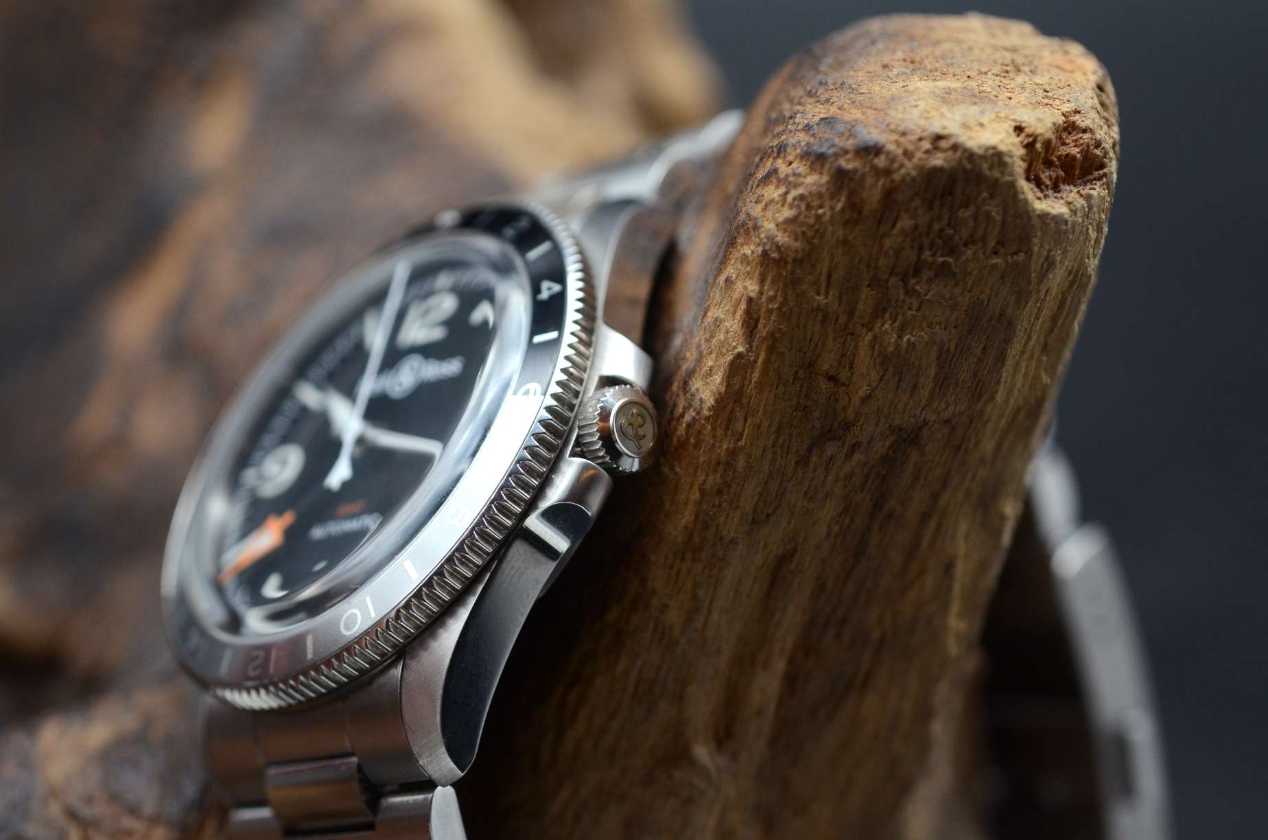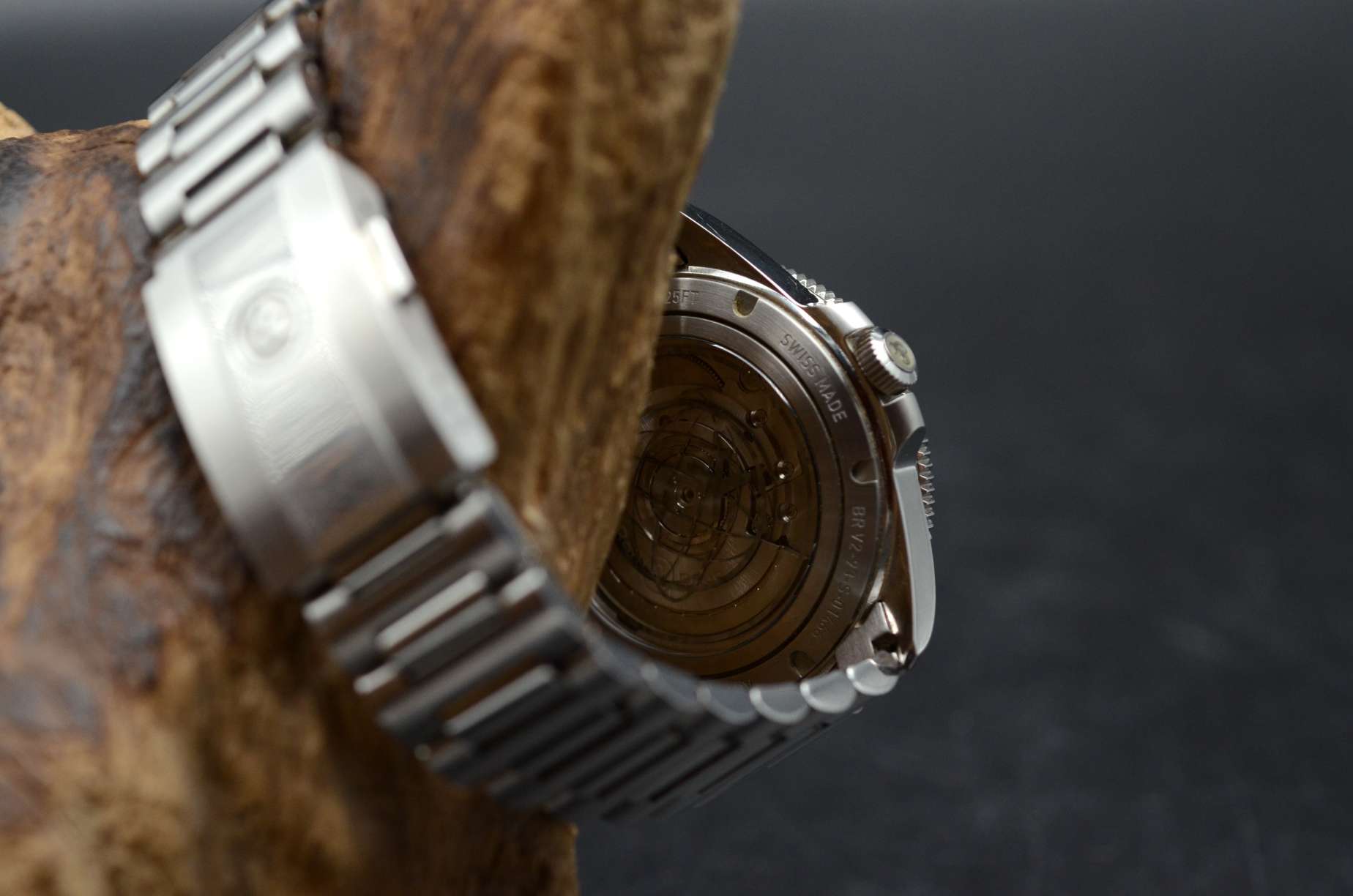 Dotée d’un boîtier en acier inoxydable de 41 mm, la BR V2-93 GMT offre une présence équilibrée au poignet, aussi bien pour un usage quotidien que pour les déplacements internationaux. Sa lunette bidirectionnelle 24 heures en aluminium bicolore permet la lecture d’un second fuseau horaire, renforçant son esprit de montre de pilote et de voyage.