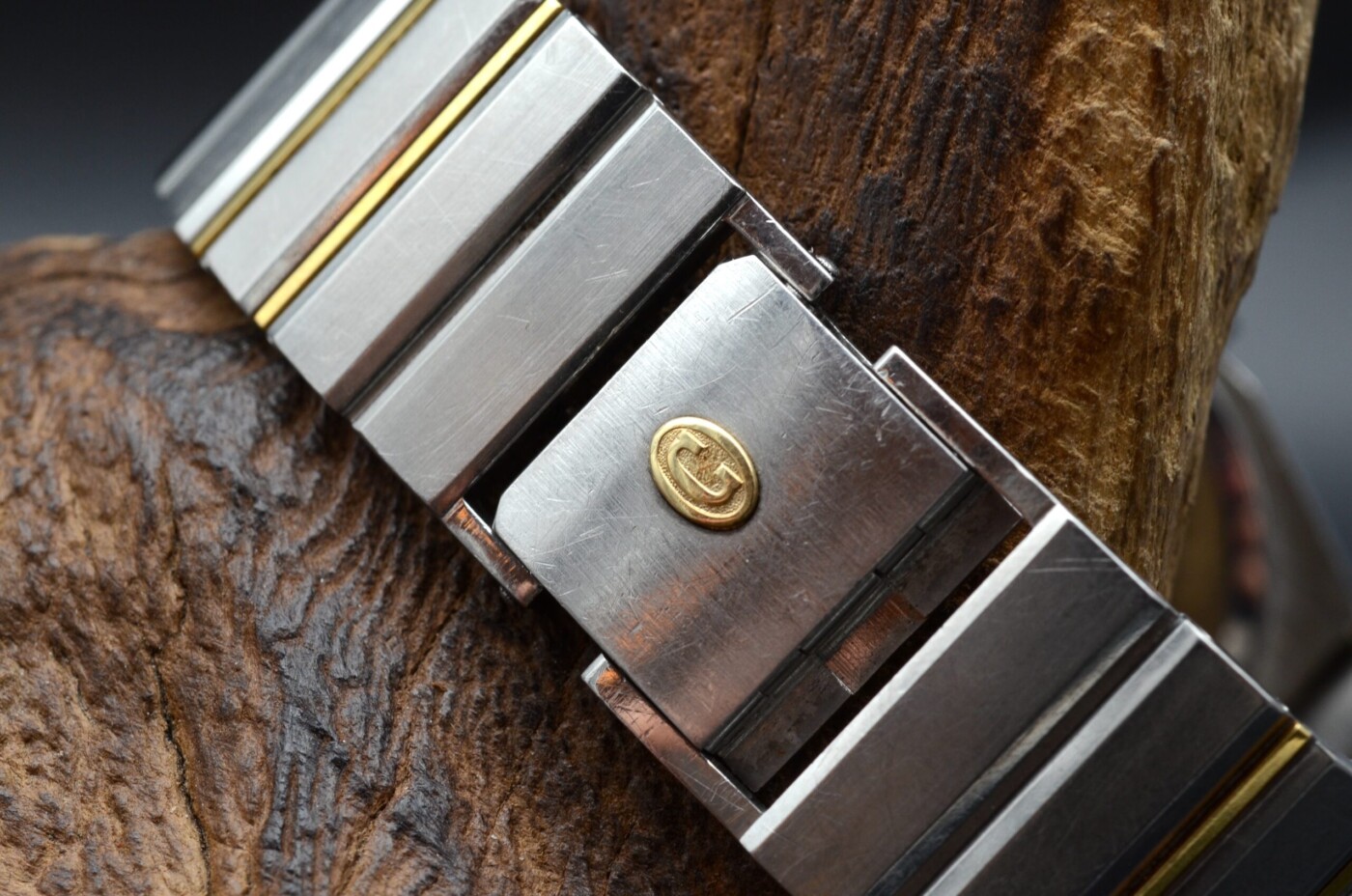 - Matériaux : Boîtier en acier inoxydable avec lunette en or jaune 18 carats.