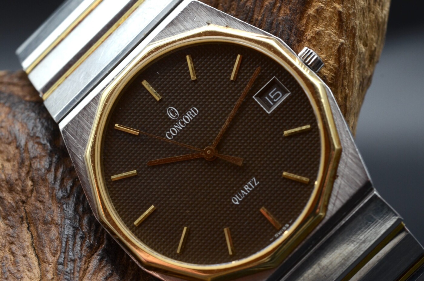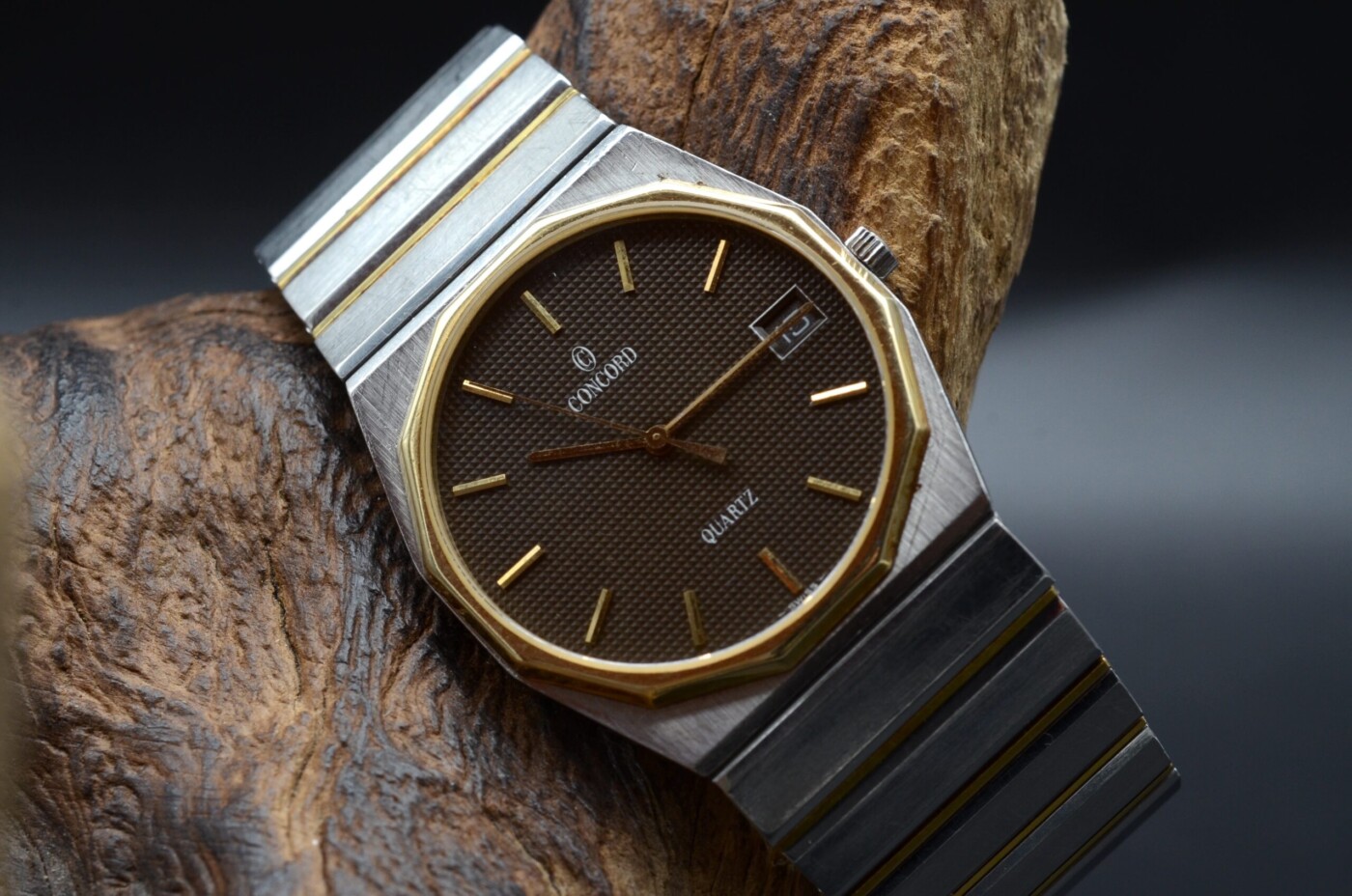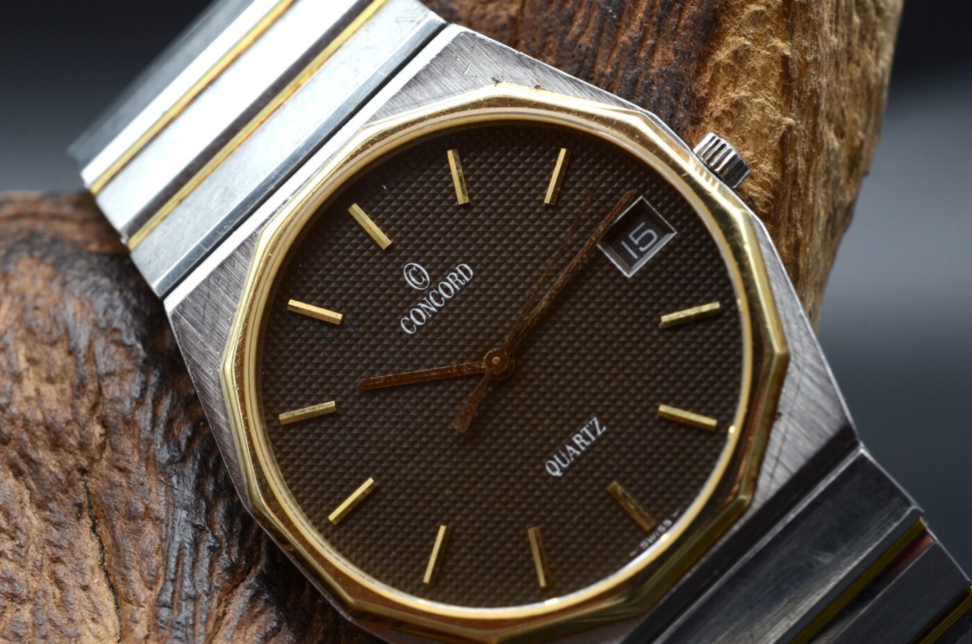 La Concord Mariner SG se distingue par son boîtier en acier robuste, sublimé par une lunette octogonale en or jaune, offrant une touche de luxe subtil. Le cadran texturé de couleur marron apporte profondeur et caractère, tandis que les index et aiguilles en or jaune assurent une lisibilité parfaite et une finition élégante. Cette montre bicolore est le symbole d’un savoir-faire horloger alliant durabilité et sophistication.