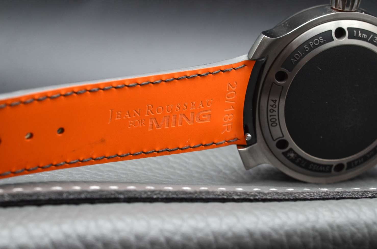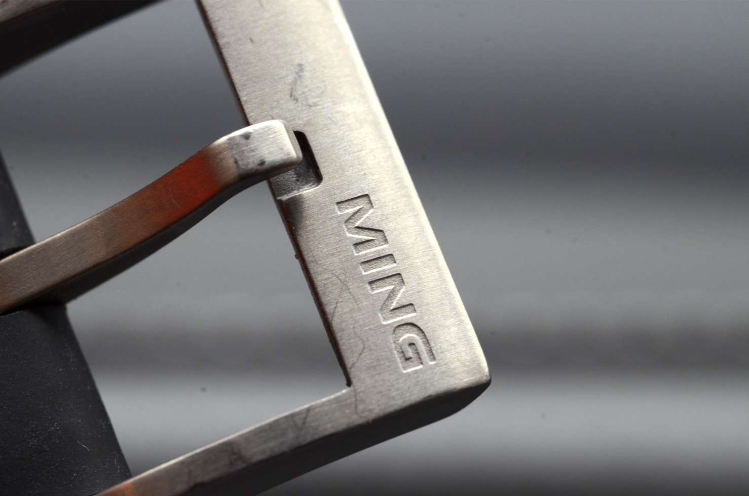 Le bracelet en caoutchouc FKM, fourni avec le Ming 18.01 H41, est conçu pour être à la fois robuste et confortable, même pour les longues périodes de port sous l’eau. Il est doté d’une boucle déployée en titane, ce qui assure une sécurité accrue et une facilité d’ajustement rapide. De plus, la montre est compatible avec une variété de bracelets, offrant ainsi une certaine flexibilité pour s’adapter à différents styles ou situations.
