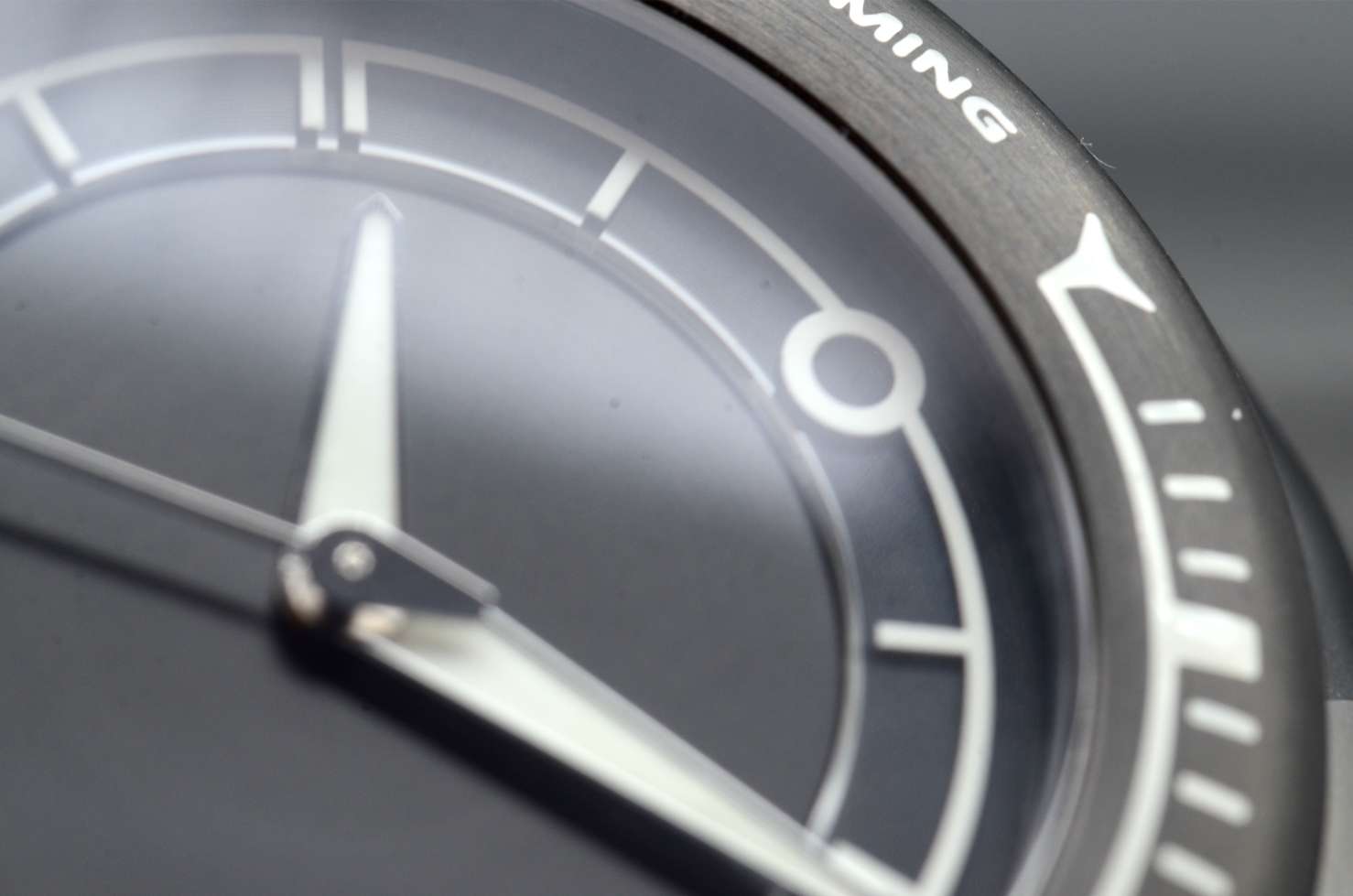 La Ming 18.01 H41 est une montre qui se distingue par son design distinctif et contemporain. Avec un boîtier en titane sablé de 40 mm , elle offre une excellente légèreté et une robustesse remarquable. Le choix du titane pour la construction permet non seulement de garantir la durabilité, mais également un confort optimal au poignet, ce qui est essentiel pour une montre de plongée.
