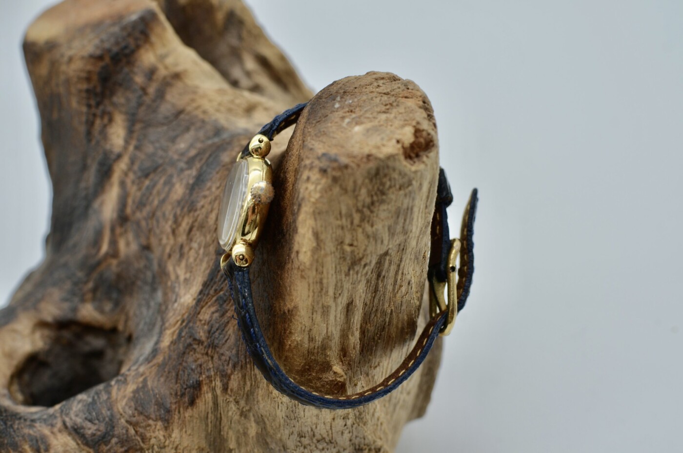 Bracelet en cuir bleu non d’origine, boucle ardillon non d’origine.