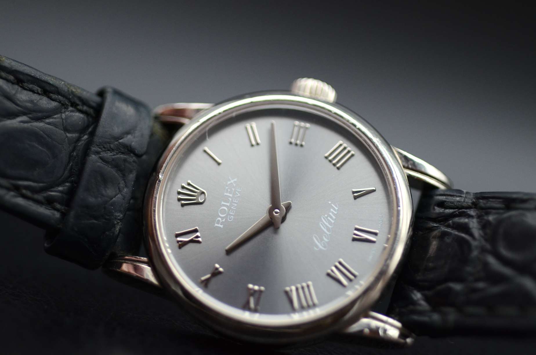 Design et caractéristiques de la Rolex Cellini Or blanc cadran gris foncé