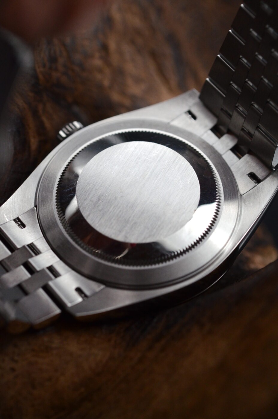 Au cœur de la Rolex 126300 bat le mouvement automatique Calibre 3235, un chef-d’œuvre d’ingénierie horlogère. Certifié Chronomètre Superlatif, ce mouvement garantit une précision remarquable et une réserve de marche étendue. Le fond du boîtier vissé assure la protection du mouvement, tout en permettant d’admirer le complexe mécanique à l’intérieur.
