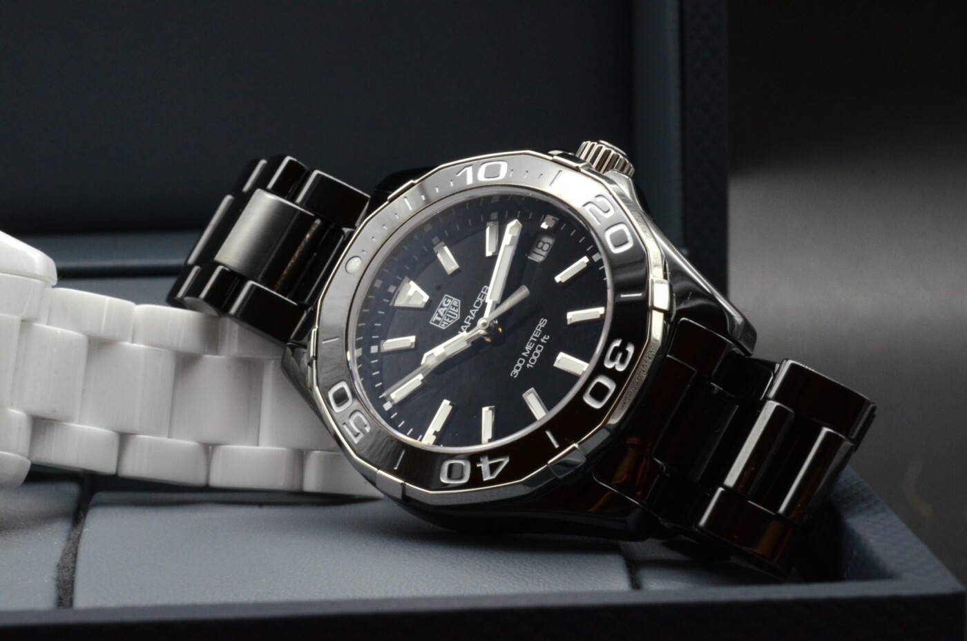 Le bracelet en céramique noir et acier inoxydable est à la fois élégant et résistant, offrant un ajustement confortable et sécurisé au poignet. La boucle déployante Tag Heuer assure une fermeture sûre et facile, tout en ajoutant une touche de sophistication supplémentaire à la montre.