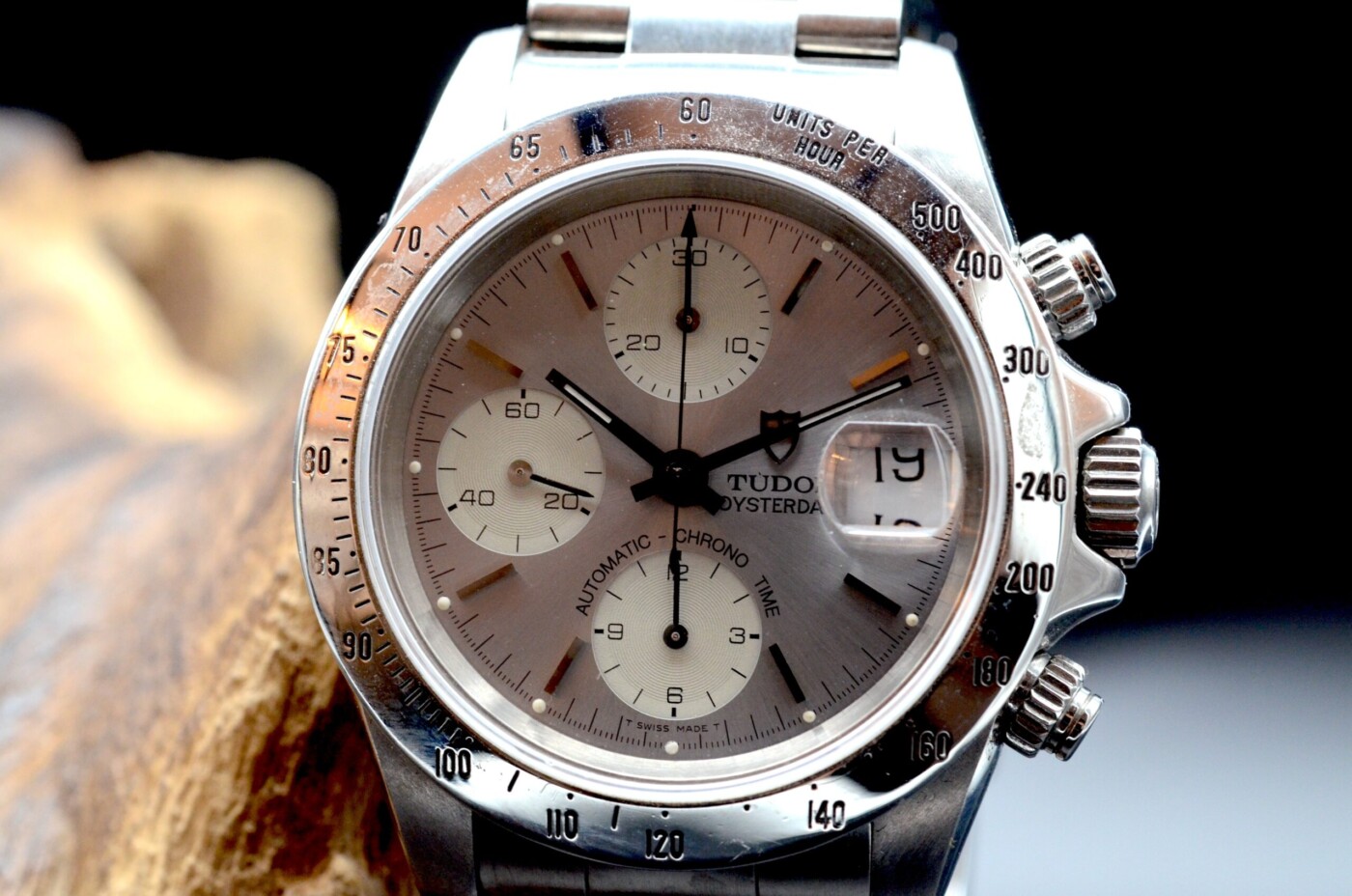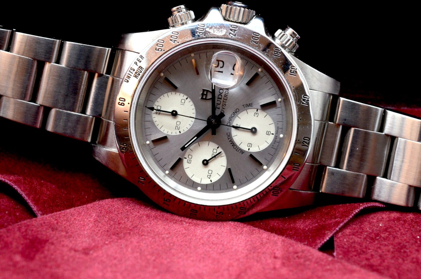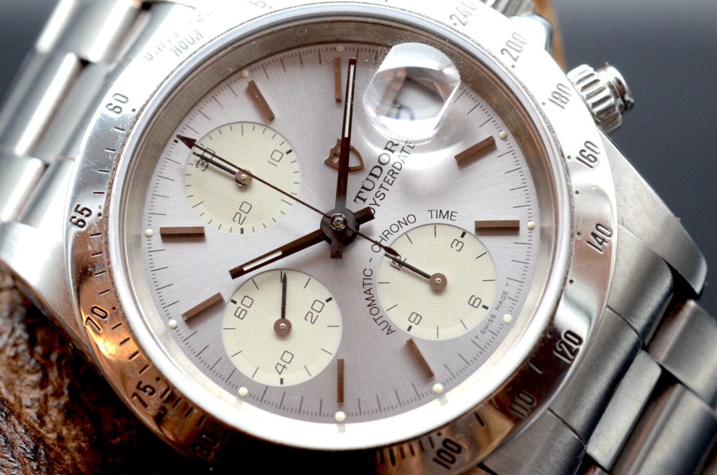 L’élément le plus marquant de la Tudor Prince « Albino » 79280 est sans conteste son cadran monochromatique. Le surnom « Albino » fait référence à son cadran argenté uniforme, où les sous-cadrans se fondent harmonieusement dans le reste du cadran principal, créant une apparence épurée et sophistiquée. Cette couleur homogène est accentuée par des index appliqués et des aiguilles en acier poli qui ajoutent une touche de contraste et de lisibilité. Les sous-cadrans, utilisés pour les fonctions chronographes et pour l’indication des secondes, sont subtilement disposés de manière à préserver l’équilibre esthétique de la montre.