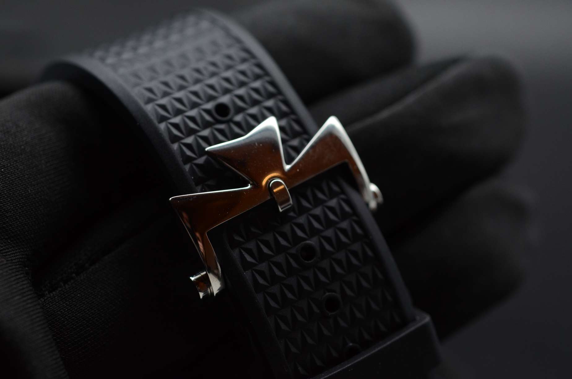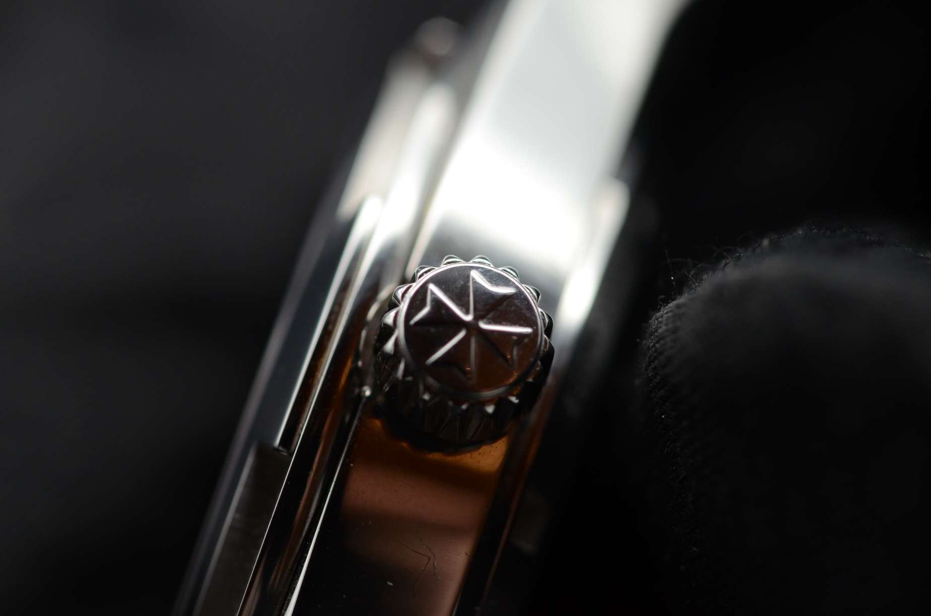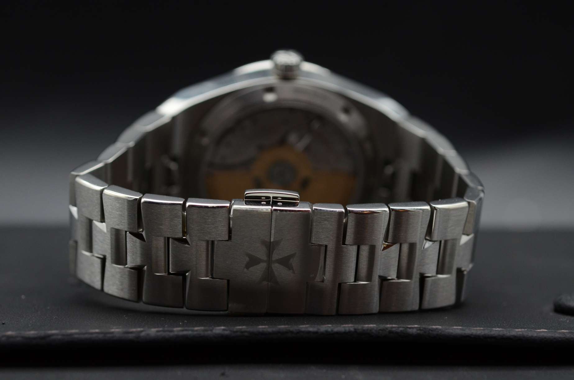 Le boîtier de la Vacheron Constantin Overseas se distingue par sa lunette inspirée de la croix de Malte, emblème historique de la Maison. Le cadran bleu, profondément lumineux, offre une lisibilité parfaite grâce à ses index appliqués et ses aiguilles luminescentes. L’ensemble confère à la montre une présence forte au poignet, tout en restant élégante et équilibrée.